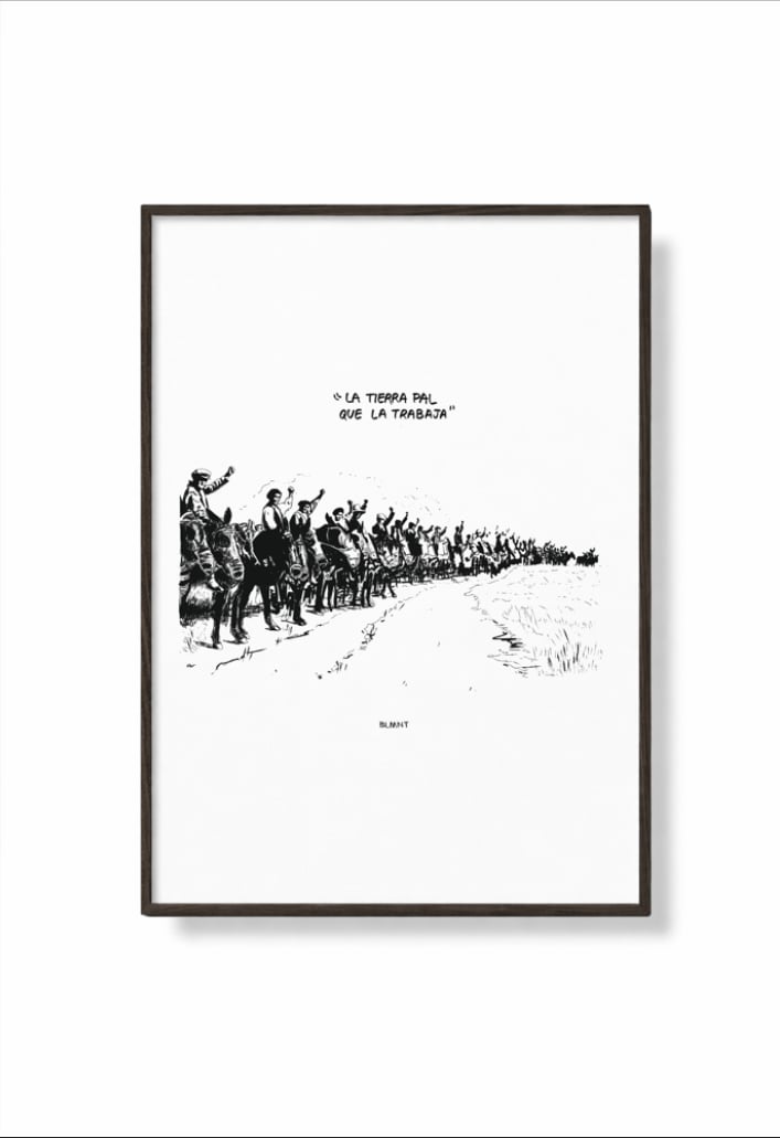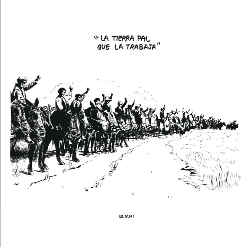 Ilustración inspirada en la rebelión campesina extremeña del 25 de marzo de 1936, para muchos el auténtico Día de Extremadura. Una ocupación organizada y pacífica de campesinos que dejó una imagen histórica: los jornaleros tomando las tierras de Badajoz.